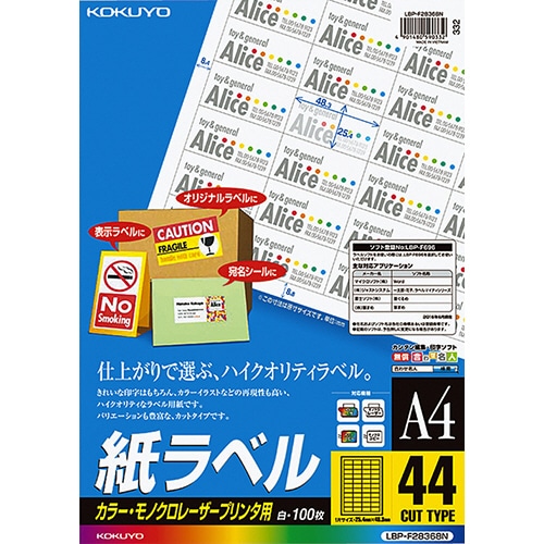 コクヨ カラーレーザー&カラーコピー用 紙ラベル A4 44面 25.4×48.3mm LBP-F28368N 1冊(100シート)