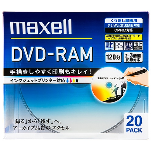 | 商品仕様 | ●種類/録画用DVD-RAM ●仕様/2-3倍速対応、CPRM、ビデオ録画用 ●録画時間/120分 ●容量/4.7GB ●カートリッジ/ノンカートリッジ ●ケース/薄型ケース ●レーベル/ホワイトワイドプリンタブル ●1箱=20枚入 |