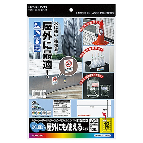 コクヨ カラーレーザー&カラーコピー用フィルムラベル(水に強い・屋外にも使えるタイプ) A4 12面 42×84mm 白・マット LBP-OD112W-10 1