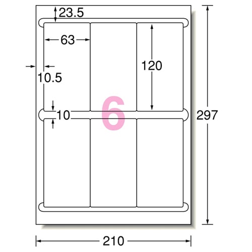 商品仕様 | ●サイズ/A4 ●シートサイズ/210×297mm ●ラベルサイズ/63×120mm ●面付け/6面 ●紙質/上質紙 ●坪量/120g/m2 ●ラベルの厚み/0.07mm ●総厚み/0.13mm ●白色度/81% ●紙色/ホワイト ●重量/780g ●備考/※厚紙モード、手差し給紙でお使いください。 ※お使いの機種によっては対応しない場合がございます。 |