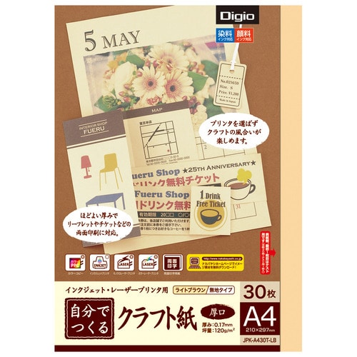 ナカバヤシ インクジェット・レーザープリンタ用 自分でつくるクラフト紙 A4 厚口 ライトブラウン JPK-A430T-LB 1冊(30枚)