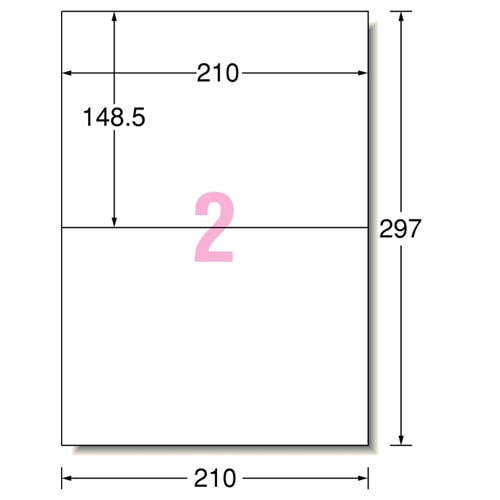 商品仕様 | ●サイズ/A4 ●シートサイズ/210×297mm ●ラベルサイズ/148.5×210mm ●面付け/2面 ●紙質/上質紙 ●坪量/120g/m2 ●ラベルの厚み/0.07mm ●総厚み/0.13mm ●白色度/81% ●紙色/ホワイト ●重量/780g ●備考/※厚紙モード、手差し給紙でお使いください。 ※お使いの機種によっては対応しない場合がございます。 |