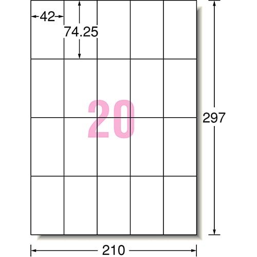 エーワン ラベルシール[レーザープリンタ] マット紙・ホワイト A4 20面 宛名表示用 42×74.25mm 65220 1冊(20シート)