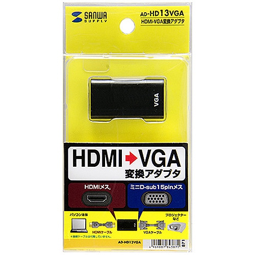 サンワサプライ HDMI-VGA変換アダプタ HDMIメス-VGAメス ブラック(RoHS指令10準拠) AD-HD13VGA 1個