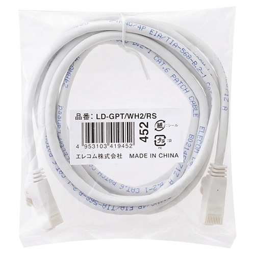 エレコム 爪折れ防止プロテクト付 カテゴリー6対応 LANケーブル ホワイト 2m RoHS指令準拠(10物質) LD-GPT/WH2/RS 1本