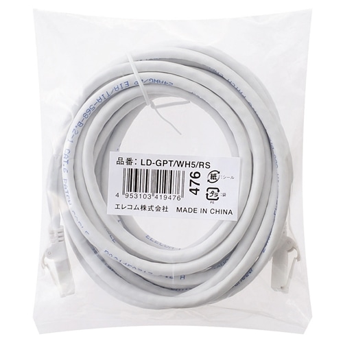 エレコム 爪折れ防止プロテクト付 カテゴリー6対応 LANケーブル ホワイト 5m RoHS指令準拠(10物質) LD-GPT/WH5/RS 1本