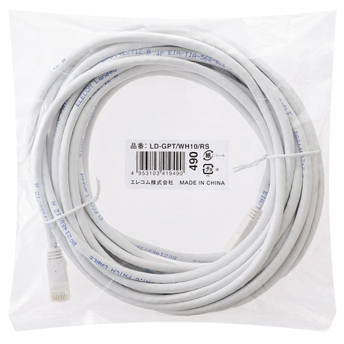 エレコム 爪折れ防止プロテクト付 カテゴリー6対応 LANケーブル ホワイト 10m RoHS指令準拠(10物質) LD-GPT/WH10/RS 1本
