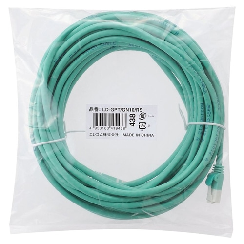 エレコム ツメ折れ防止LANケーブル(Cat6対応) グリーン 10m RoHS指令準拠(10物質) LD-GPT/GN10/RS 1本