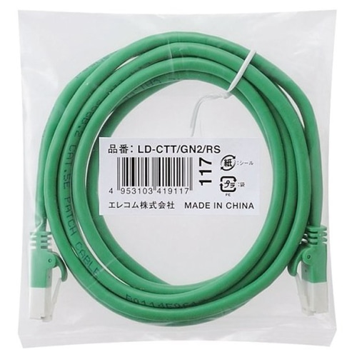 エレコム ツメ折れ防止LANケーブル(Cat5e対応) グリーン 2m RoHS指令準拠(10物質) LD-CTT/GN2/RS 1本