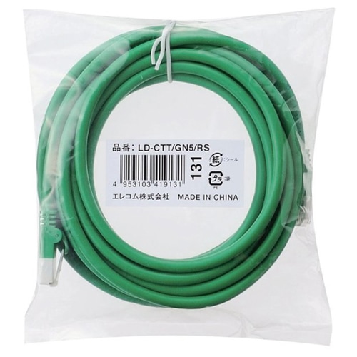 エレコム ツメ折れ防止LANケーブル(Cat5e対応) グリーン 5m RoHS指令準拠(10物質) LD-CTT/GN5/RS 1本