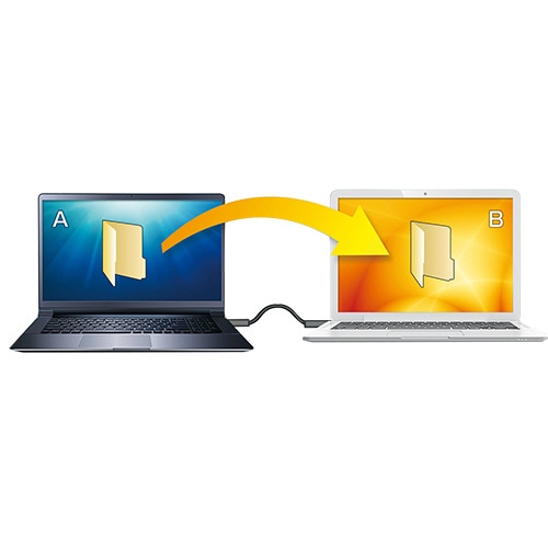 2台のパソコン間をドラッグ&ドロップの直感操作でファイル転送ができる簡単便利なUSB2.0リンクケーブル