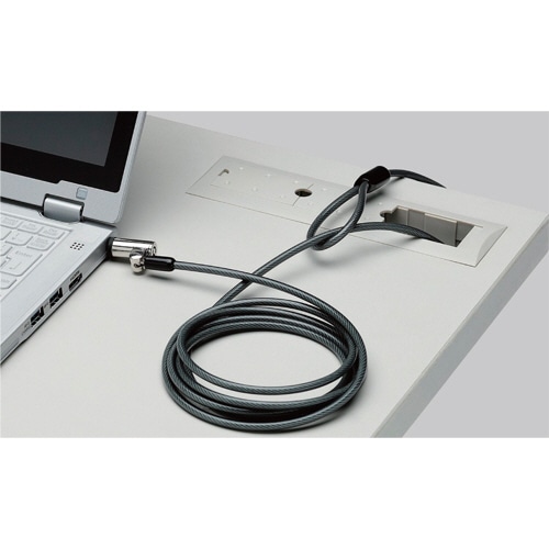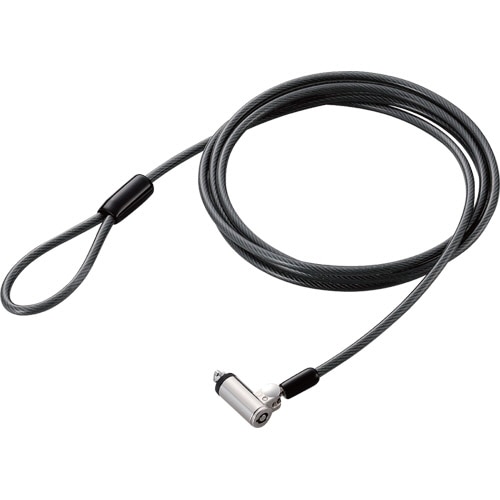 商品仕様 | ●錠タイプ/シリンダ錠ワイヤー一体型 ●ワイヤー径/4.5mm ●ワイヤー長/2m ●錠部サイズ/W26.4×H19.75mm、直径11mm ●セット内容/本体×1、鍵×2 ●備考/※機器側の規格により、スロットの深さが合わない場合があります。 |