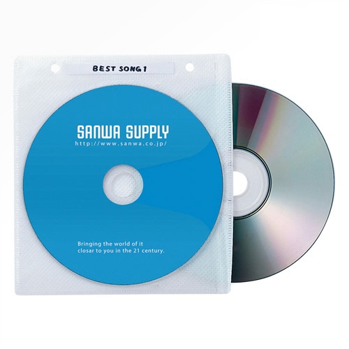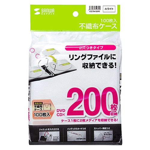 サンワサプライ DVD・CD不織布ケース リング穴付 インデックスカード付 ホワイト FCD-FR100WN 1パック(100枚)