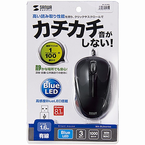 サンワサプライ 静音有線ブルーLEDマウス ブラック MA-BL9BK 1個