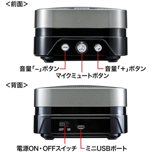 | 商品仕様 | ●ケーブル長さ/約1.5m ●指向性/全指向性 ●寸法/W110×D110×H63mm ●質量/約410g ●その他仕様/●電源:USB ●集音範囲:約5m(360°) ●スピーカー:2W(1W+1W 実用最大出力) ●保証期間/6ヵ月 |