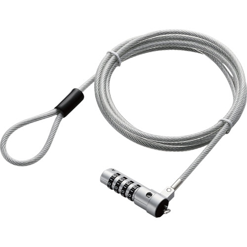 商品仕様 | ●錠タイプ/ダイヤル式 ●ワイヤー径/5mm ●ワイヤー長/1.8m ●錠部サイズ/直径17mm ●その他仕様/●セキュリティスロットサイズ:3~3.8×7~7.5mm ●備考/※機器側の規格により、スロットの深さが合わない場合があります。 |