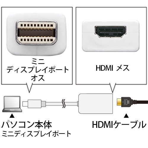 Mini DisplayPortを搭載したMacBook等をHDMIインターフェイスを持つディスプレイに接続するときに使用する変換アダプタ。