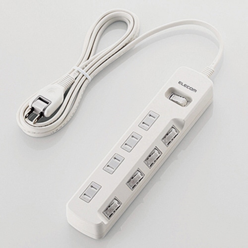 エレコム 一括&個別スイッチ付 雷ガードタップ 2P・4個口 ホワイト 2.5m T-K8A-2425WH 1個
