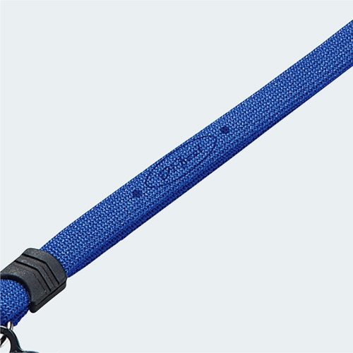 ●肌触りの良い素材を使用した10mm幅、ブルーのスマホ・デジタルカメラ用ネックストラップ。