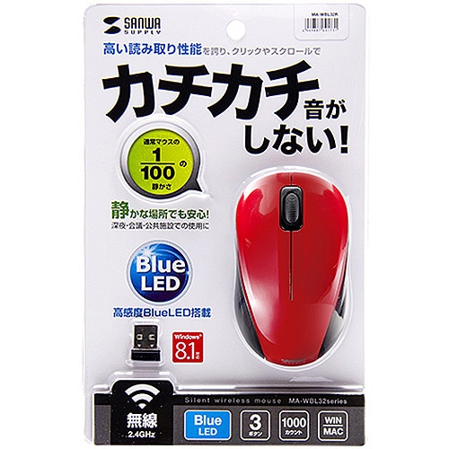 サンワサプライ 静音ワイヤレスブルーLEDマウス レッド MA-WBL32R 1個