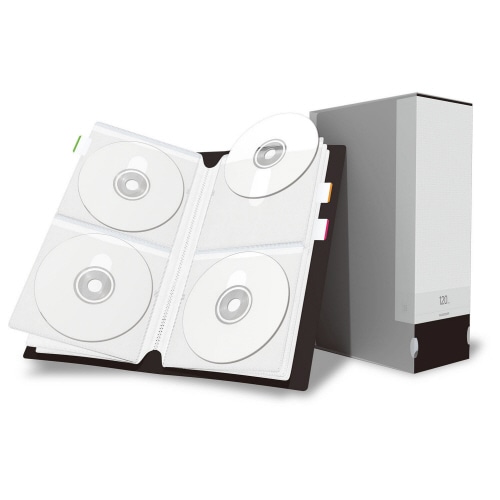 ●CD・DVDを120枚収納できるディスクファイル。本体色はブラックです。
