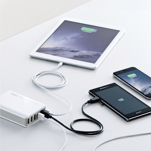 | 商品仕様 | ●コネクタ形状(本体)/USB A×6 ●ケーブル長さ/約1m ●寸法/W26×D100×H70mm ●重量/196g ●色/ブラック ●入力電圧/電流/AC100~240V 50~60Hz 1.5A ●出力電圧/電流/DC5V/10A ●付属品/ACケーブル ●備考/※充電用USBケーブルは別売です。 |