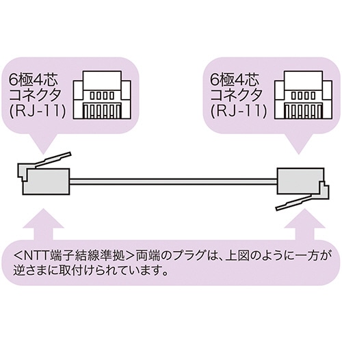 ●NTT端子結線準拠。両端のプラグは一方が逆さまに取り付けられています。