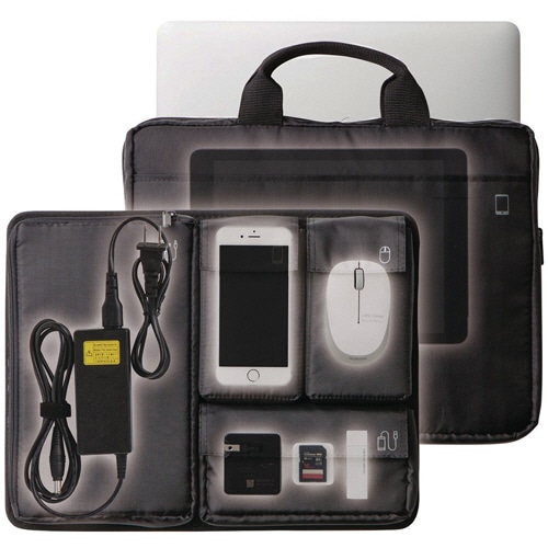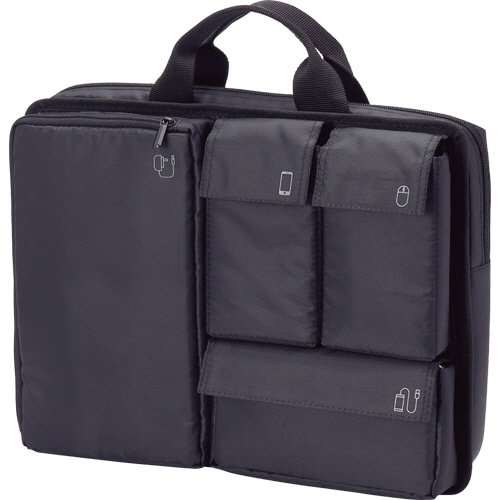 | 商品仕様 | ●色/ブラック ●本体外寸/W350×D95×H270mm ●パソコン収納部内寸/W340×D50×H260mm ●対応ノートPCサイズ/~13.3型 ●材質/ポリエステル ●その他仕様/●重量:400g |