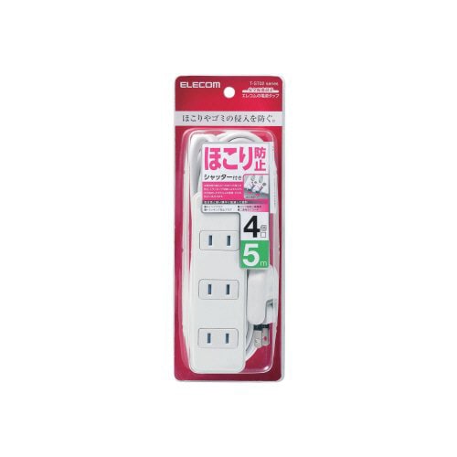 エレコム ほこりシャッター付き電源タップ 2P・4個口 ホワイト 5.0m T-ST02-22450WH 1個