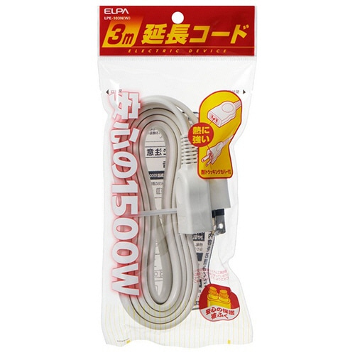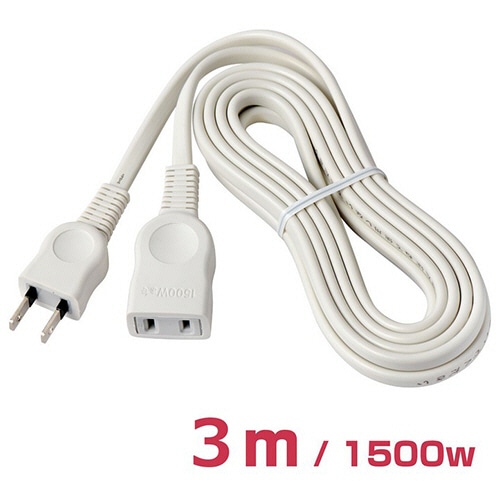 | 商品仕様 | ●色/ホワイト ●コンセント仕様/2P ●コンセント数/1個口 ●定格容量/15A・125V・1500W ●ケーブル長さ/3m ●質量/260g ●その他仕様/●耐トラッキングカバー ●二重被ふく |
