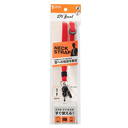 | 商品仕様 | ●質量/16g ●色/レッド ●材質/ポリエステル ●その他仕様/●タイプ:平紐 ●サイズ:幅10×長さ560mm ●耐荷重:1kg ●長さ調節可能 ●備考/※タブレット、ミラーレス一眼カメラには使用できません。 |