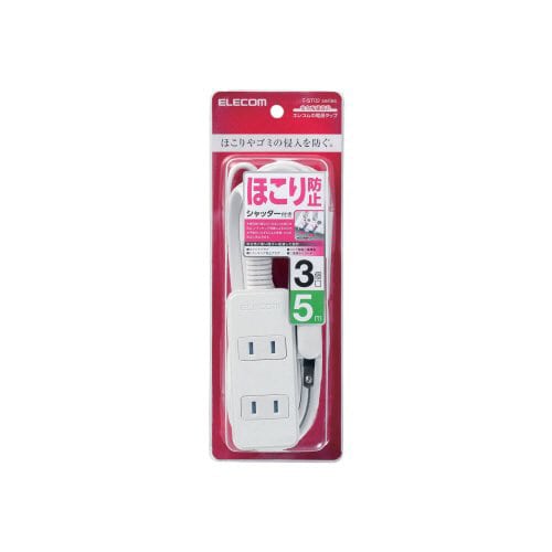 エレコム ほこりシャッター付き電源タップ 2P・3個口 ホワイト 5.0m T-ST02-22350WH 1個
