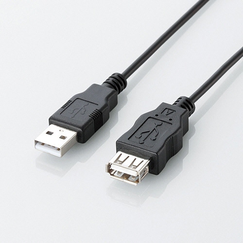 ●USB(Aタイプオス)のインターフェイスを持つメモリーカードリーダやマウス、キーボードなどの周辺機器のUSBケーブルを延長して接続できるブラックのUSB2.0ケーブル。長さは2mです。