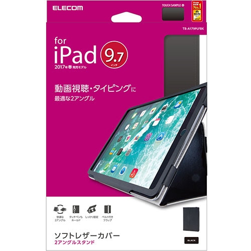 エレコム 9.7型iPad 2017年モデル用ソフトレザーカバー 2アングル ブラック TB-A179PLFBK 1個