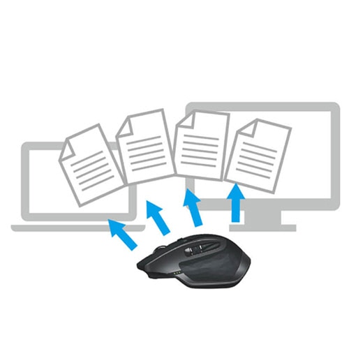 ●3台のパソコン間でシームレスに動作するワイヤレスマウス、本体色はグラファイトコントラストです。