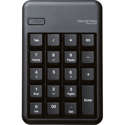 | 商品仕様 | ●接続方式/USB ●キー配列/20キー ●キーピッチ/19mm ●キー入力方式/メンブレン ●対応OS/Windows 10/8.1/7 ●寸法/W90×D140×H26.5mm ●質量/約107g ●その他仕様/●保証期間:6ヵ月 ●付属品/単3形乾電池、USBレシーバー ●備考/※質量は電池を含まず。 ※最新のOS対応状況はメーカーHPでご確認ください。 |