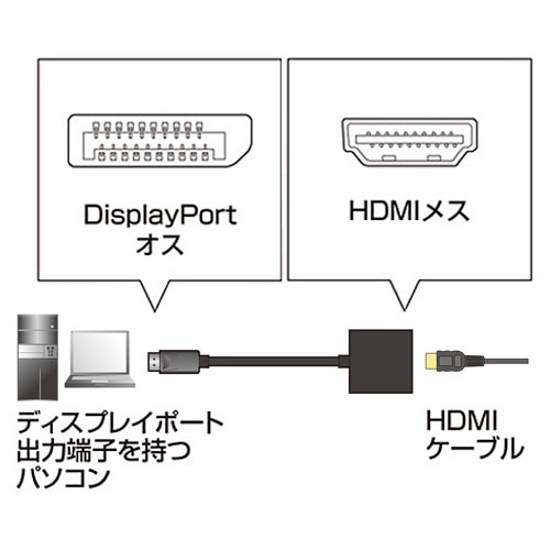 ●DisplayPortを搭載したパソコン本体をHDMIポートを持つディスプレイ・テレビに接続するときに使用する変換アダプタケーブルです。