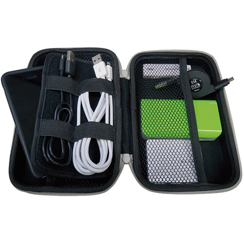 ●耐久性に優れたEVA素材を使用し、深めのメッシュポケットには少し大きめのモバイルバッテリーやスマホ、細かなガジェット類も楽々としっかり収納。ダブルファスナーで出し入れもしやすく、トラベル等の外出時に適した、ブラックのケースです。