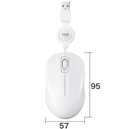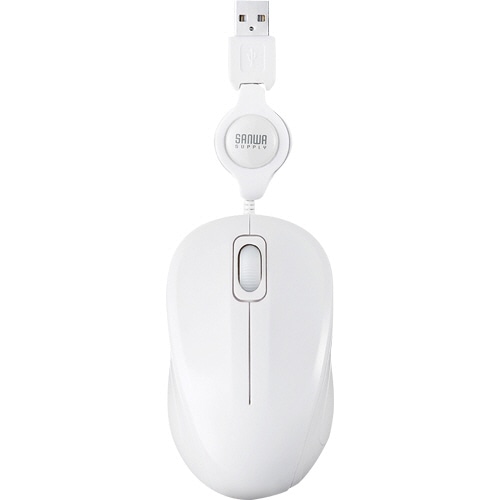 ●静かなクリック音とホイール回転音の静音ケーブル巻き取りブルーLEDマウス。カラーはホワイトです。