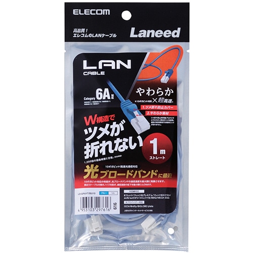 エレコム ツメ折れ防止やわらかLANケーブル Cat6A準拠 ブルー 1.5m RoHS指令準拠(10物質) LD-GPAYT/BU15 1本