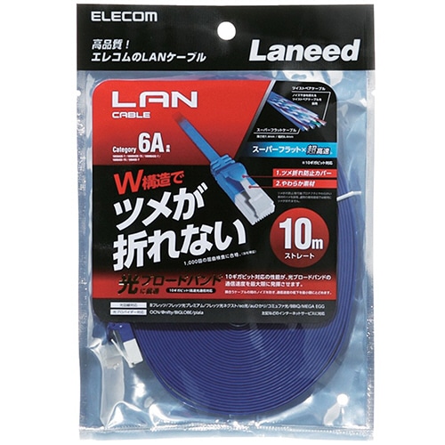 エレコム ツメ折れ防止フラットLANケーブル(Cat6A対応) ブルーメタリック 10.0m RoHS指令準拠(10物質) LD-GFAT/BM100 1本