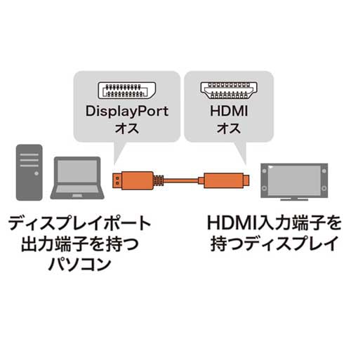 DisplayPortのPCとHDMIのディスプレイをアダプタ無しで直接接続することができる変換ケーブル。