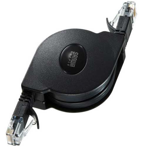 サンワサプライ 自動巻取りLANケーブル(Cat6) ブラック 1.5m KB-MK18BK 1個