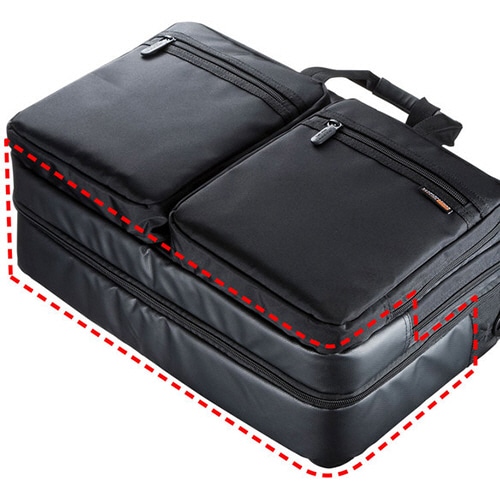 商品仕様 | ●色/ブラック ●本体外寸/W450×D170(マチ拡張時230)×H330mm ●パソコン収納部内寸/W415×D40×H300mm ●対応ノートPCサイズ/15.6型ワイドノートパソコン、10.1型までのタブレット ●質量/約1230g ●材質/ポリエステル(撥水加工) ●その他仕様/●ダブルタイプ ●書類収納部サイズ:W420×D45×H310mm ●前ポケットサイズ:W210×D35×H260mm |