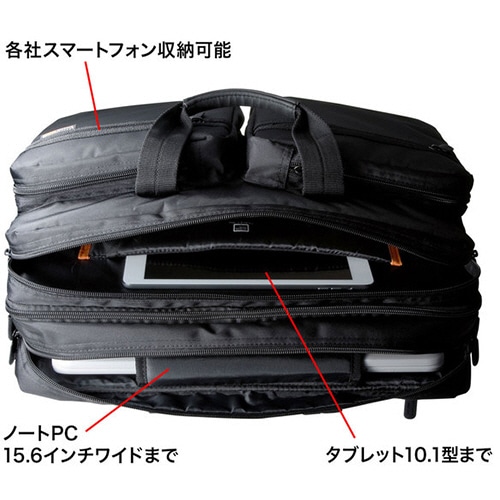サンワサプライ 3WAYビジネスバッグ(出張用・大型) 15.6型ワイド対応 ブラック BAG-3WAY22BK 1個