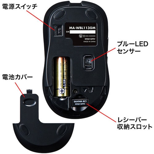 ●レシーバーはマウス本体裏面に差し込むだけの簡単収納です。