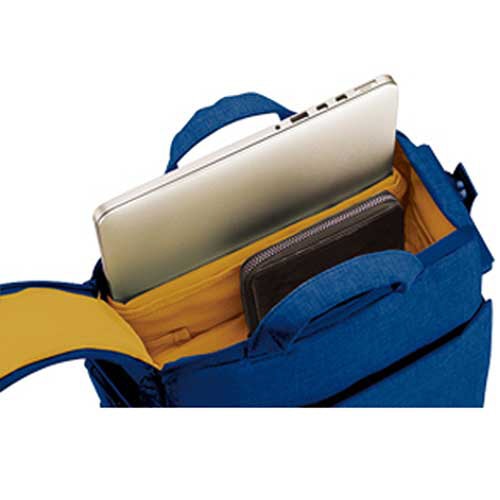 ●上面から13.3型までのパソコンを収納可能な専用ポケットを配置しています。上面に財布などの小物を仕分けて収納可能なスペースを配置しています。