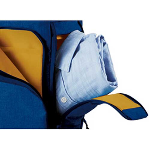 ●右側面に着替えや靴などを収納可能なスペースを配置。左側面に撥水収納口を配置し、ボトルや折りたたみ傘などの濡れた物を独立して収納できます。