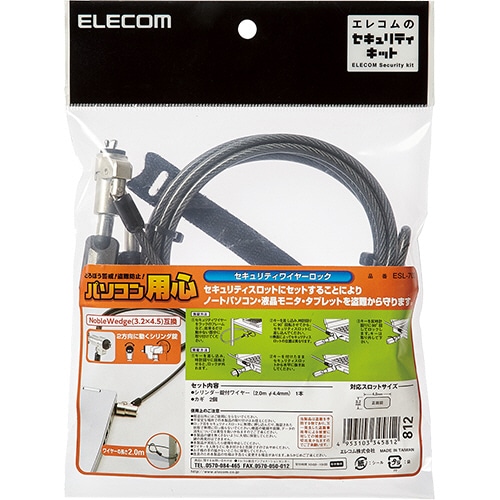 エレコム セキュリティワイヤーロック スタンダード シリンダー錠/NobleWedge(3.2×4.5)互換 ESL-703 1個