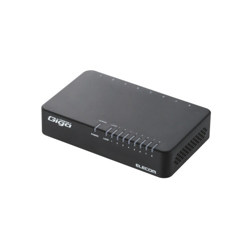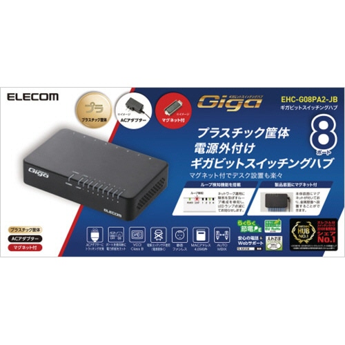 エレコム 1000BASE-T対応スイッチングハブ 8ポート プラスチック筐体 ブラック マグネット付き RoHS指令準拠(10物質) EHC-G08PA2-J